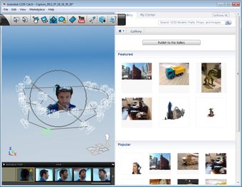 Is Autodesk 123D Catch klaar met het model dan bekijk je deze vanuit diverse camerastandpunten. Ook is het mogelijk foto's handmatig op het model te "naaien" (met de functie Stitch) maar denk eraan dat dit extra tijd kost. De software voert namelijk alle berekeningen opnieuw uit bij veranderingen. Eenmaal gecreëerd deel je gemakkelijk modellen met anderen via de Autodesk-community of zet je het als filmpje op YouTube. Exporteren naar formaten voor 3ds Max (ook van Autodesk) is ook mogelijk.